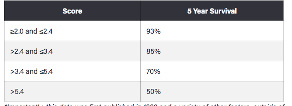 The Nottingham Prognostic Index (NPI)* is a widely used clinicopathological staging system for primary breast cancer prognosis. It is calculated by: