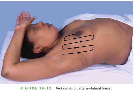 How do you examine the lateral portion of the breast?