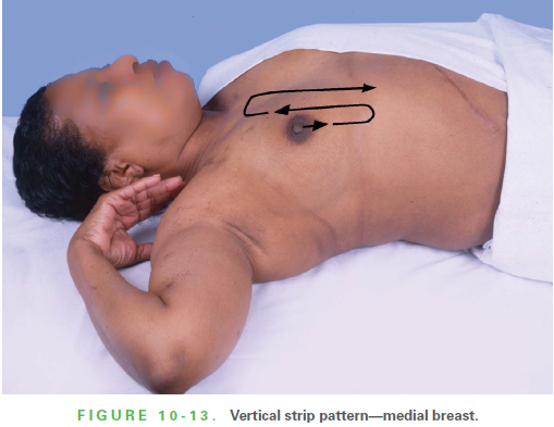 How do you examine the medial portion of the breast?
