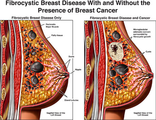 What are some characteristics of fibrocystic breasts?