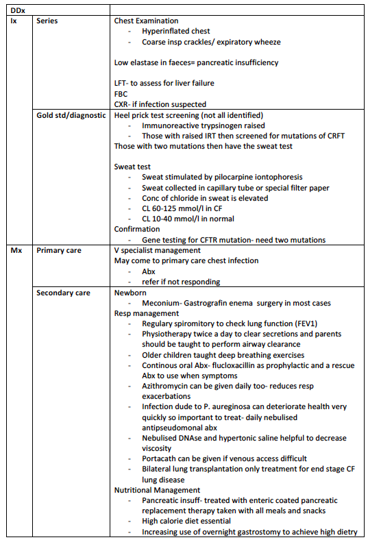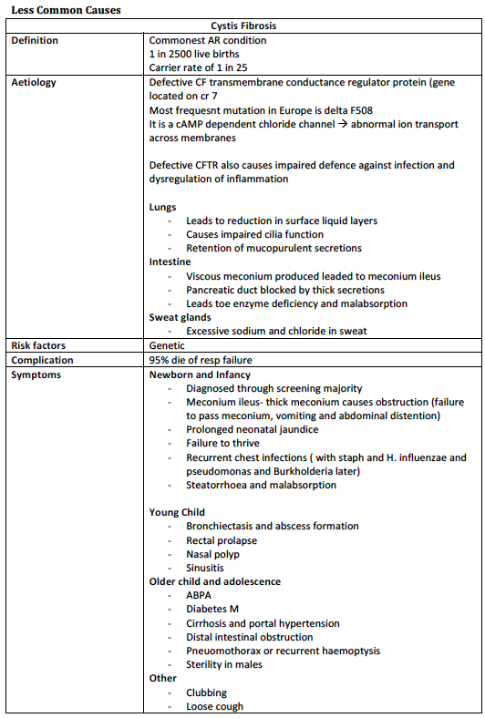 What is the definition of, aetiology of, risk factors for and symptoms of Cystic Fibrosis?