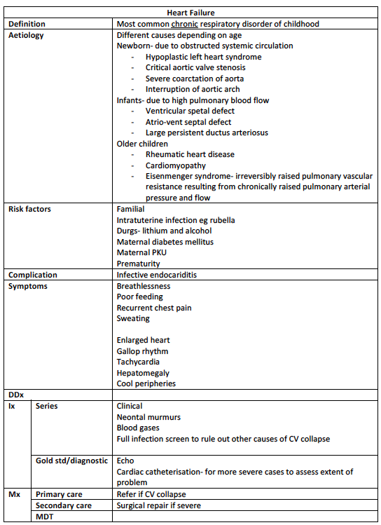 What are the symptoms, signs, investigations and managment of Heart Failure?