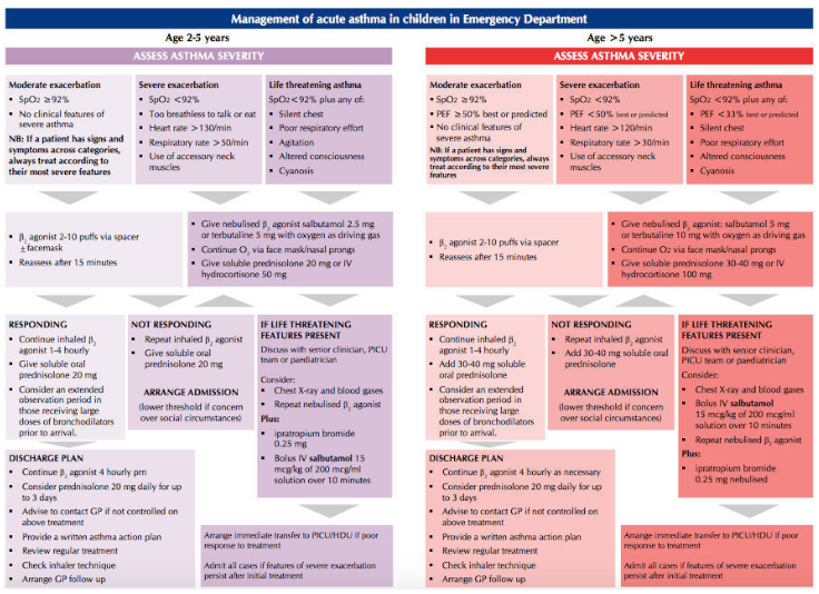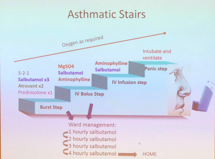 Outline the emergancy management of Asthma
