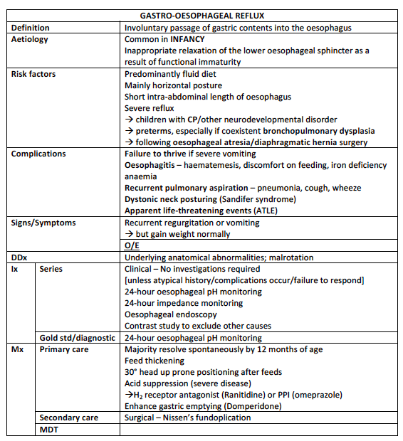 Gastro-oesophageal reflux (GORD)