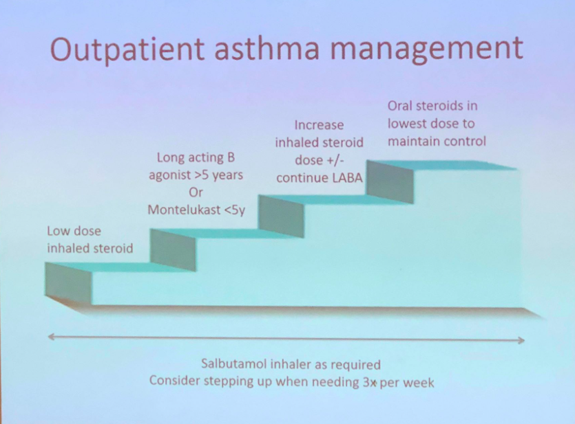 Outline the outpatient management of Asthma
