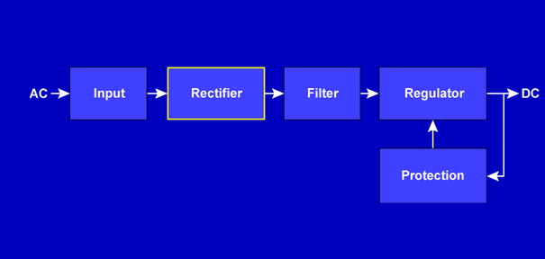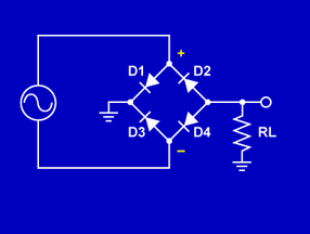 In this bridge rectifier circuit, what is the purpose of D1-D4?