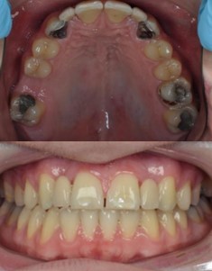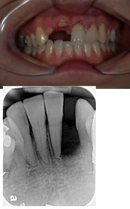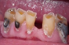 an abutment tooth which stands between and is supporting two pontic - each pontic being attached to a further abutment tooth