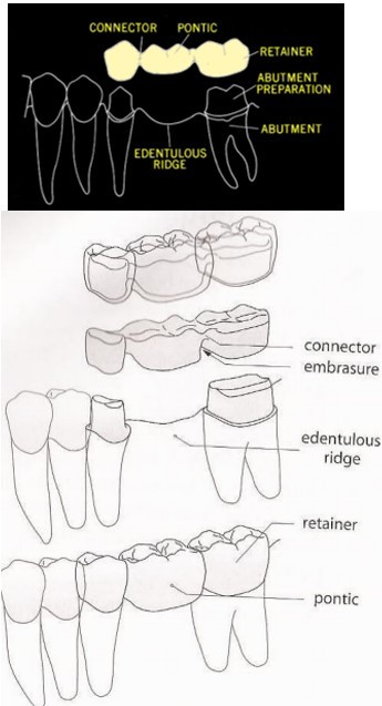 the extracoronal or intracoronal restorations that are connected to the pontic and cemented to teh prepared abutment teeth