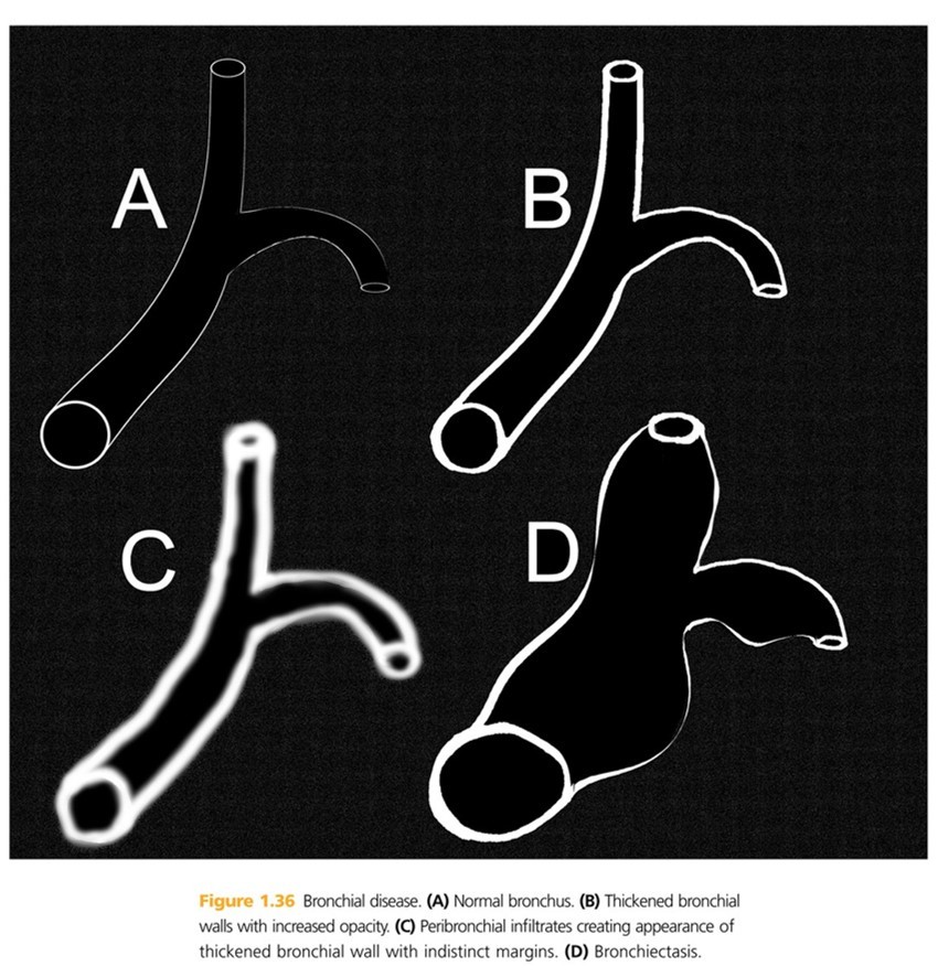 Peribronchial cuffing, bronchi, chronic inflammation