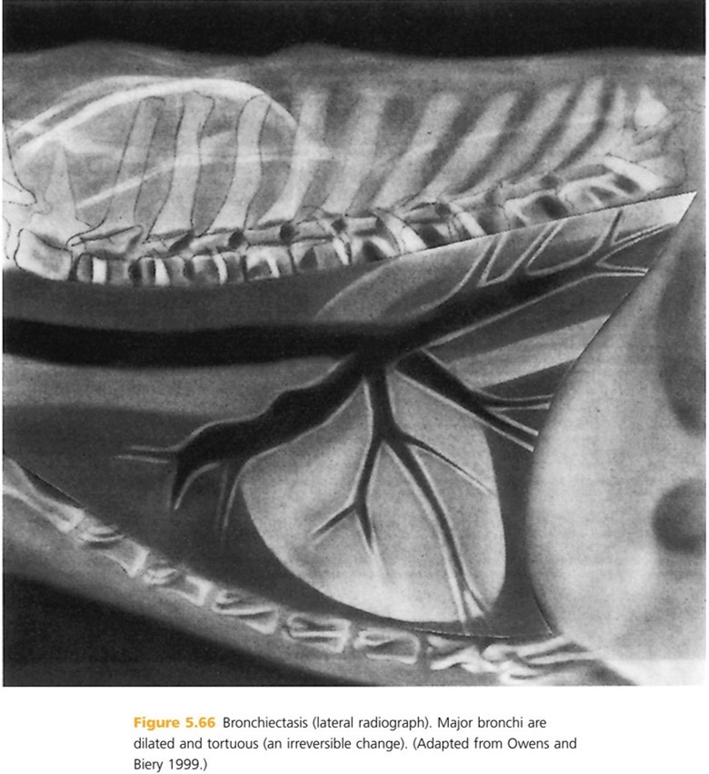 Abnormal, irreversible, dialation of bronchi. It is uncommon in dogs and rare in cats (American Cocker Spaniel and Siamese cat may have higher incidence). Most often reported in middle-aged and older animals, but can happen at any age.