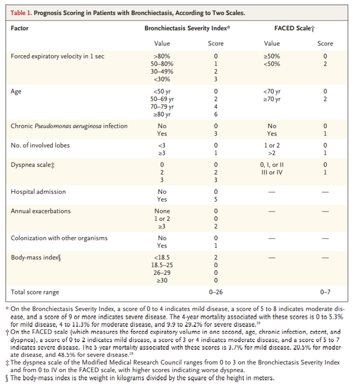 Can use FACED score or bronchiectasis severity index (BSI) score.