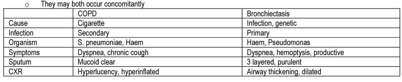 5. Chronic bronchitis, obstructive airway disease and bronchiectasis (lower lobe)