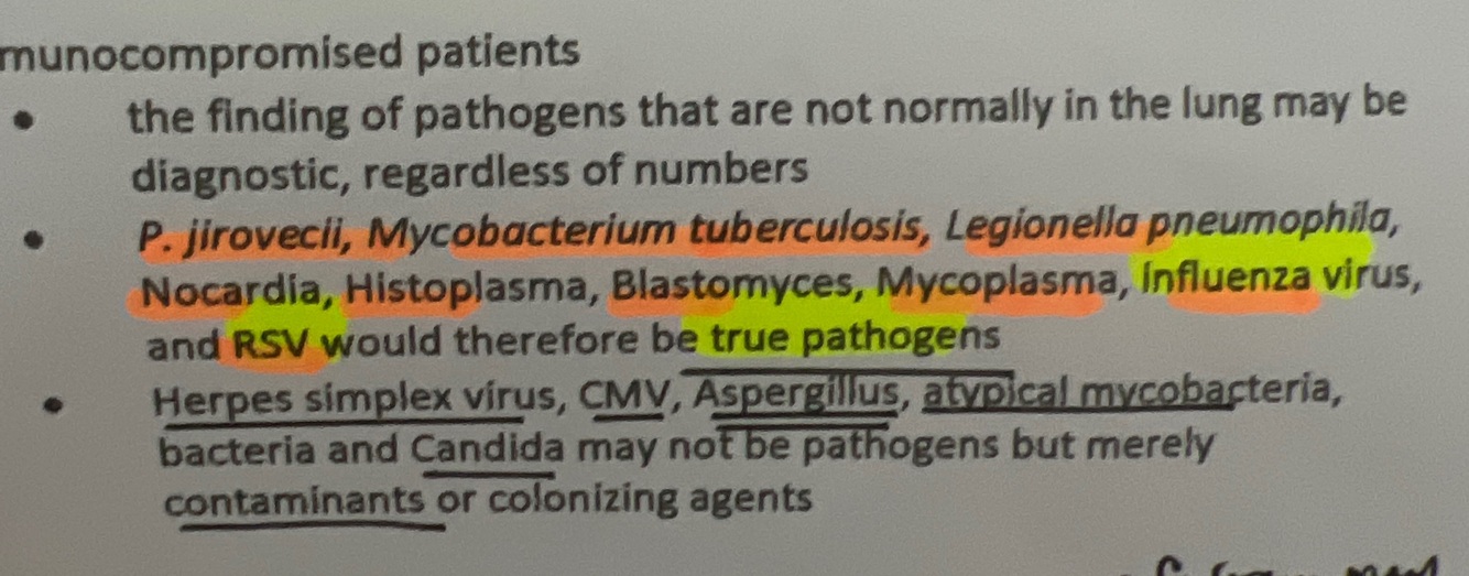 immunocompromised patients ma have these pathogens regardless of numbers