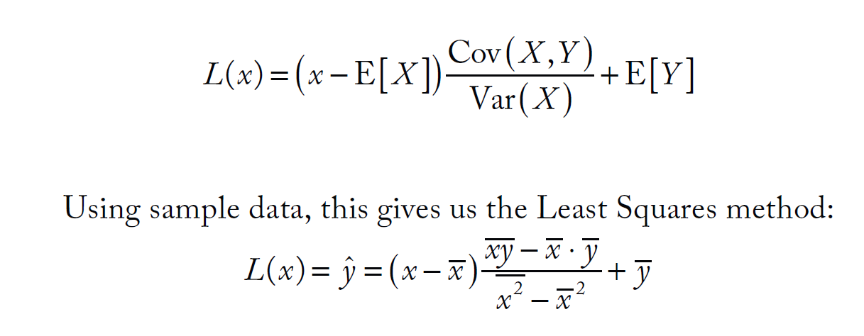 Excel: LINEST(known y’s, known x’s) => returns b, a