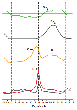 27. The answer is D [VI C 3; Table 7.7]. Before the injection of insulin, the woman would have had hyperglycemia, glycosuria, hyperkalemia, and metabolic acidosis with compensatory hyperventilation. The injection of insulin would be expected to decrease her blood glucose (by increasing the uptake of glucose into the cells), decrease her urinary glucose (secondary to decreasing her blood glucose), decrease her blood K+ (by shifting K+ into the cells), and correct her metabolic acidosis (by decreasing the production of ketoacids). The correction of the metabolic acidosis will lead to an increase in her blood pH and will reduce her compensatory hyperventilation.