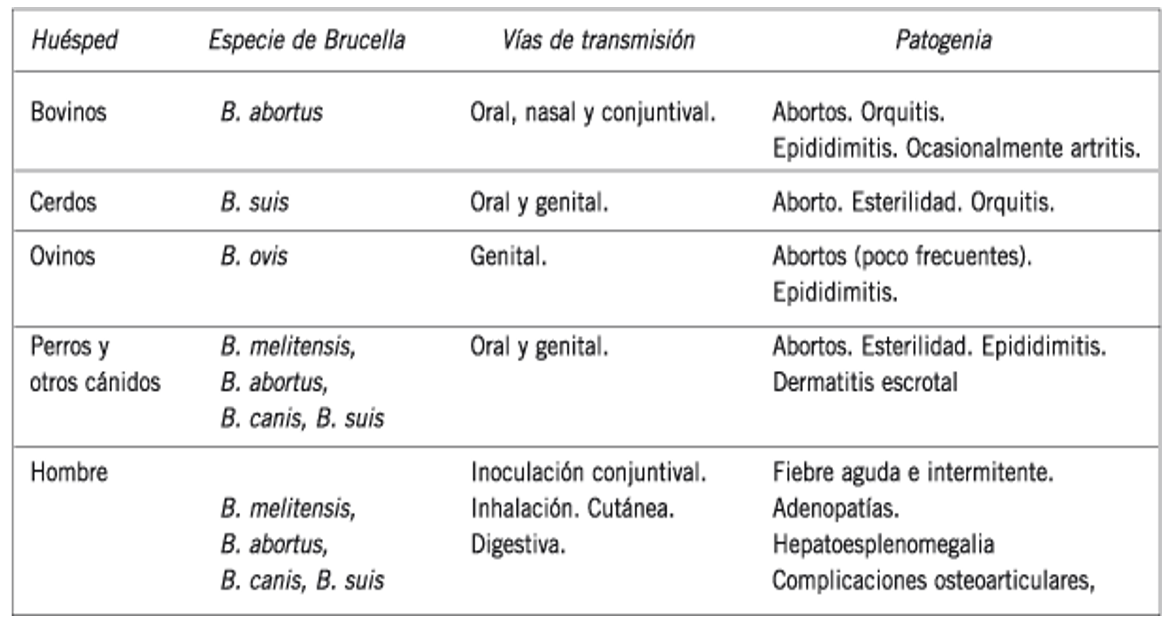 Especies: abortus melitiensis, suis, canis, ovis, neotomae