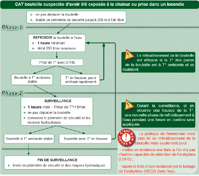 CAT d’une bouteille suspectée d’avoir été exposée à la chaleur ou prise dans un incendie :