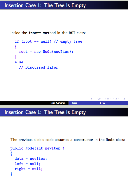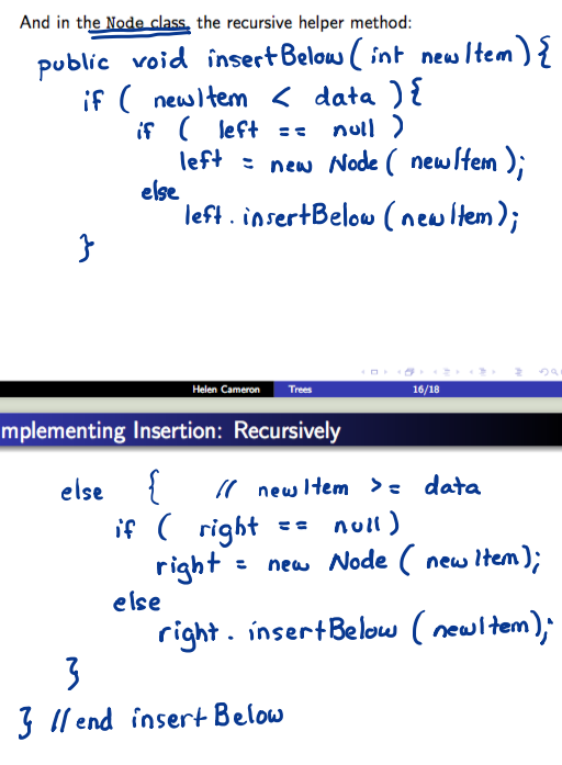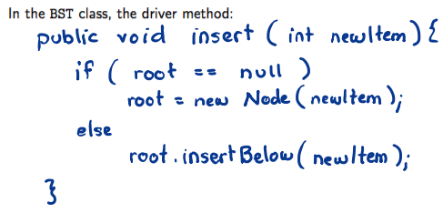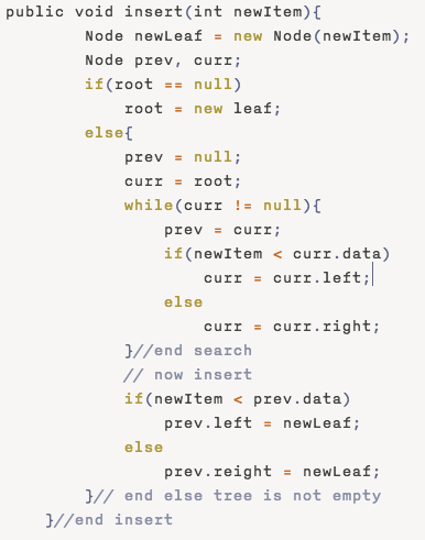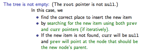 What is the iterative insert code if the BST is NOT empty(after the initial else condition)