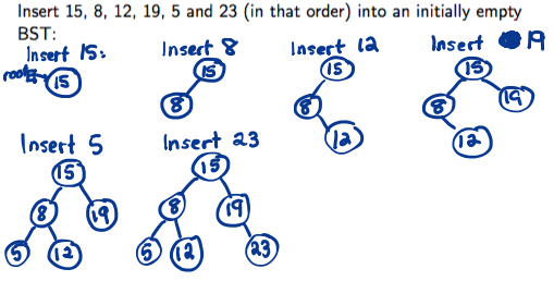 Insert 15, 8, 12, 19, 5 and 23 into an initially empty BST
