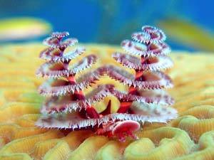 The sight of brightly coloured Christmas tree worms boring into the surface of massive Porites colonies is common and distinctive.