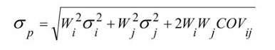 Wi = weight of stock 'i' Wj = weight of stock 'j' σi = standard deviation of stock 'i' σj = standard deviation of stock 'j' COVij = covariance between ‘i’ and ‘j’ - this may not be given, but correlation coefficient will be instead