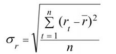 σr = standard deviation of results from the expected return Σ = summation of all terms n = number of periods being considered rt = actual return r¯ = average return