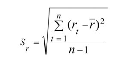 Sr = standard deviation of results from the expected return Σ = summation of all terms n = number of periods being considered rt = actual return r¯ = average return