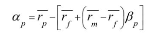 αp = difference of return from the amount required by investors rp = return of the portfolio rf = risk-free rate of return rm = return of the market - may be given **_“market premium”_**, which is (rm-rf) βp = Beta of the portfolio being measured