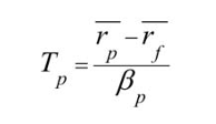 Tp = Treynor Index rp = return of the portfolio rf = risk free rate of return βp = beta of the portfolio being measured