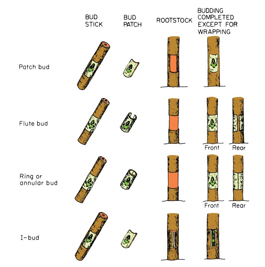 used on thick-barked species (walnuts and pecans) in whick T-budding sometimes gives poor results