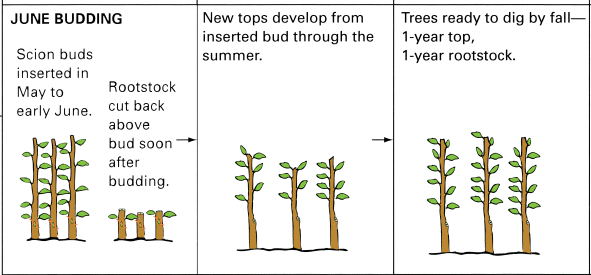 budding that is done as soon as new seasonal growth occurs, in late March to early May, depending on location