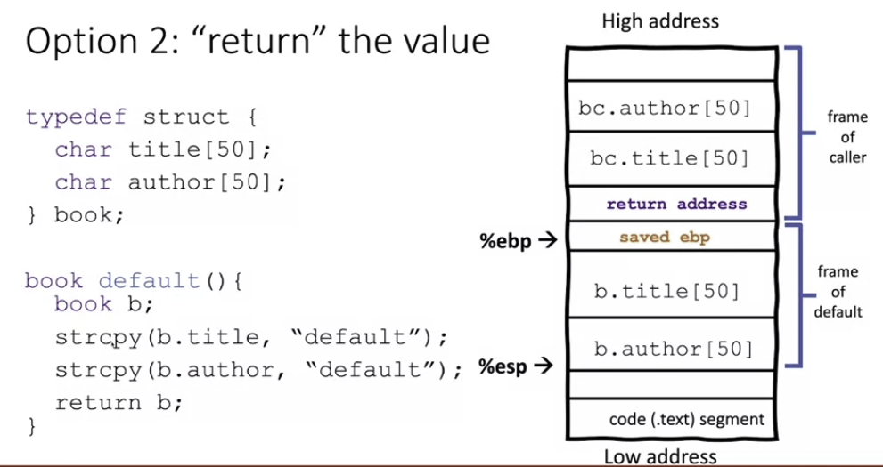if value is big, caller allocates space for it in its stack frame