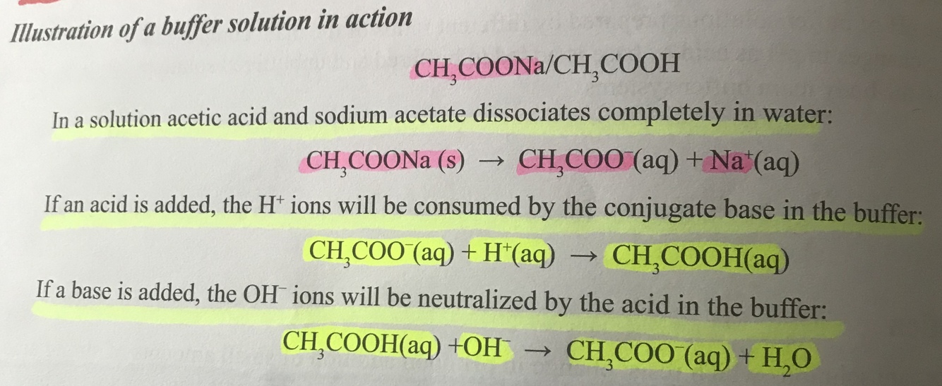 Illustrate a buffer solution of acetic acid and sodium acetate in action