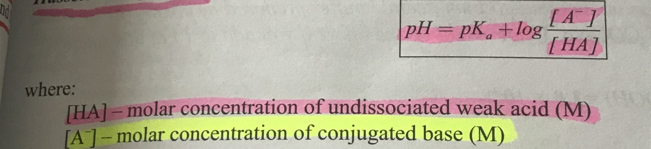 Illustrate the Henderson hasslebach equation for an acid buffer