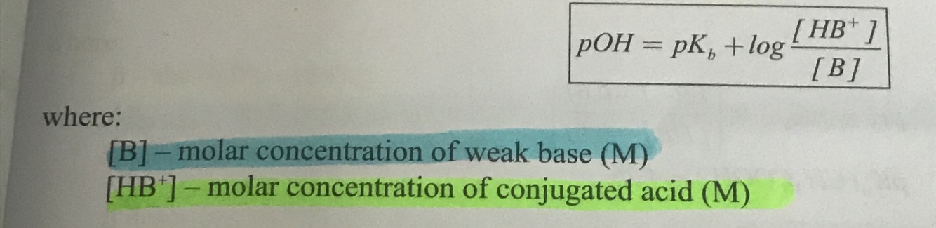 Illustrate the Henderson hasslebach equation for an basic buffer