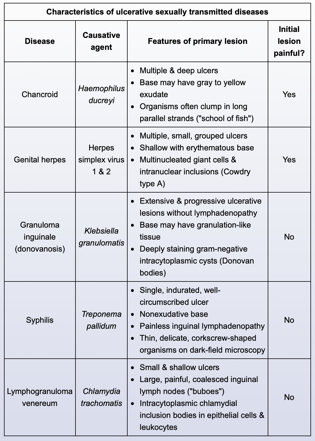 chancroid: painful exudative ulcer