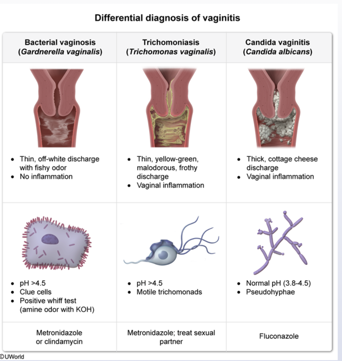 discharge features? cells? pH? Treatment?
