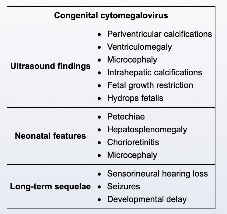 clinical features of congenital cytomegalovirus in utero