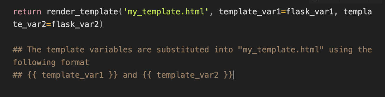 Template variables are representations of application data that are used inside templates. Created using keyword arguments in render_template, template variables are substituted into a template when using expression delimiters {{ }}