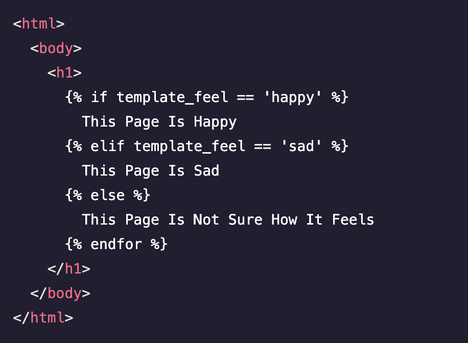 Statement delimiters {% %} surround control statements such as if and for to be identified by the Jinja 2 template engine.