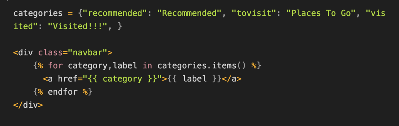 For loops are used in templates to repeat content or iterate through data during Jinja2 template engine processing. For loops are contained inside statement delimiters with the following syntax {% for local_var in iterator %}. Content inside the block is repeated where the block start with the for statement and is closed by {% endfor %}.