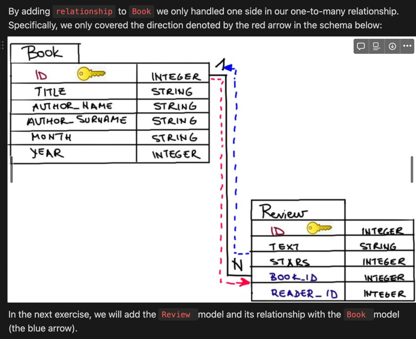 图中红线部分,现有两张表,一张Book,一张Reader,book的ID连Review中的book_id,Reader中的id连Review中的reader_id