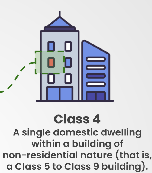 A single domestic dwelling within a building of non-residential nature (that is, a Class 5 to Class 9 building). For example, a caretaker’s residence within a hospital.