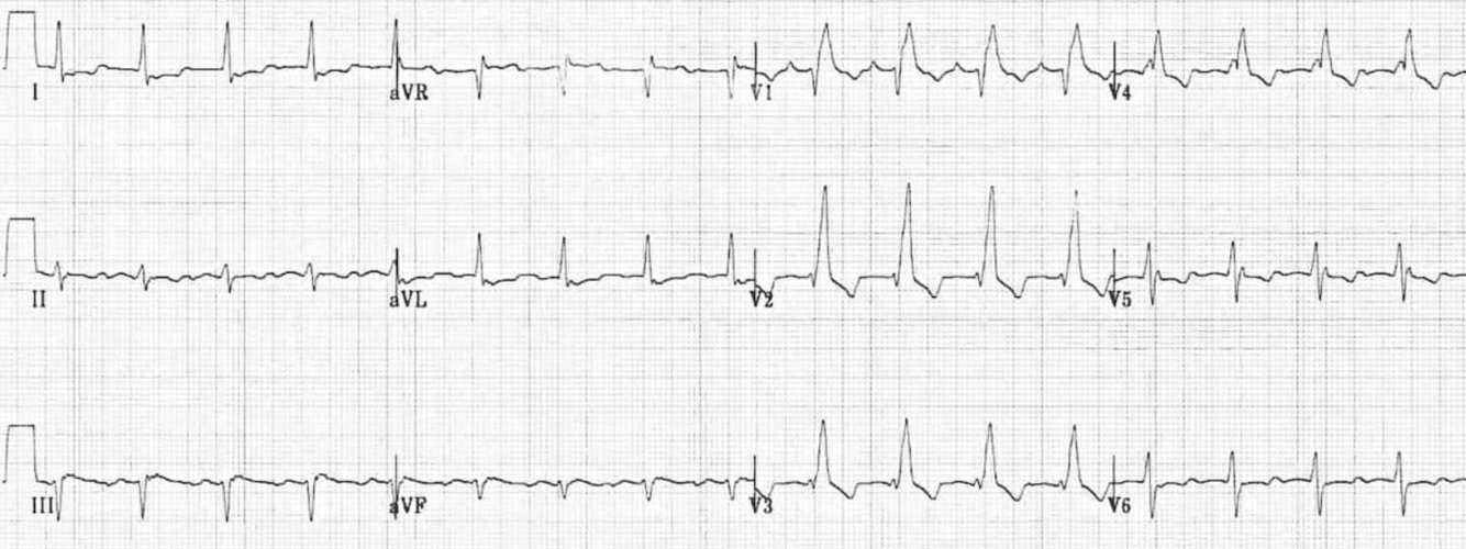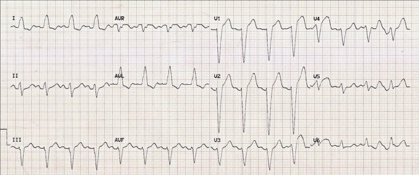 Assess the following ECG for signs of intraventricular conduction delay