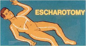 Surgical cuts are made to prevent compartmental syndrome–buildup of fluid.