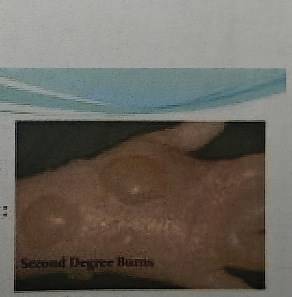 What are the clinical features of superficial second degree burns?