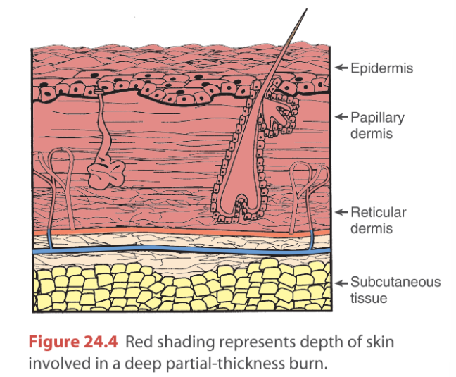 What is damaged in a Deep Partial-Thickness burn?