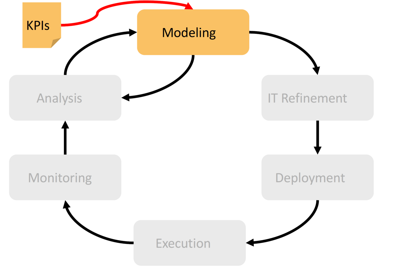 Modeling, IT Refinement, Deployment, Execution, Monitoring, Analysis, KPIs.