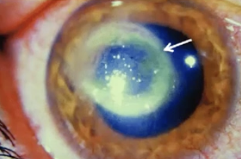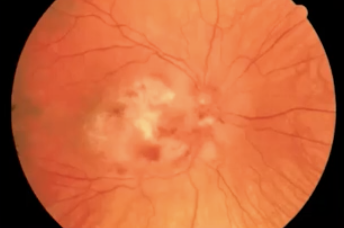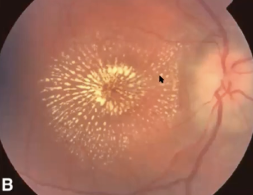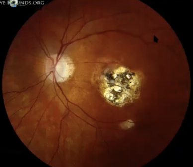 White focal retinitis with overlying vitreous inflammation ‘headlight in the fog’ with accompanying pigmented scar