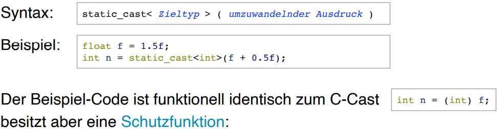 Der Operator static_cast erlaubt die Umwandlung eines Typs in einen